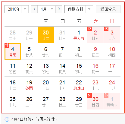 关于2016清明节放假安排的通知